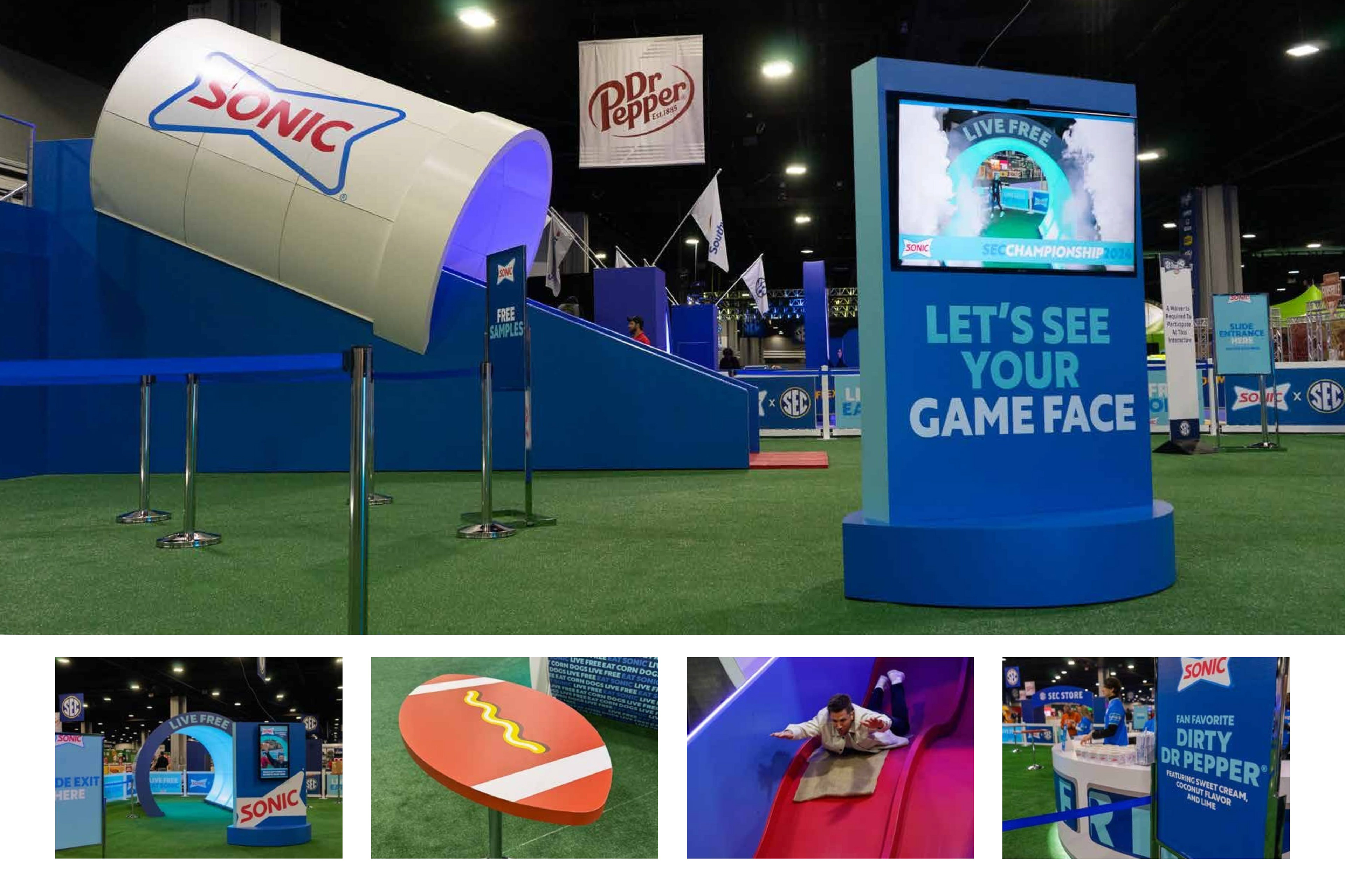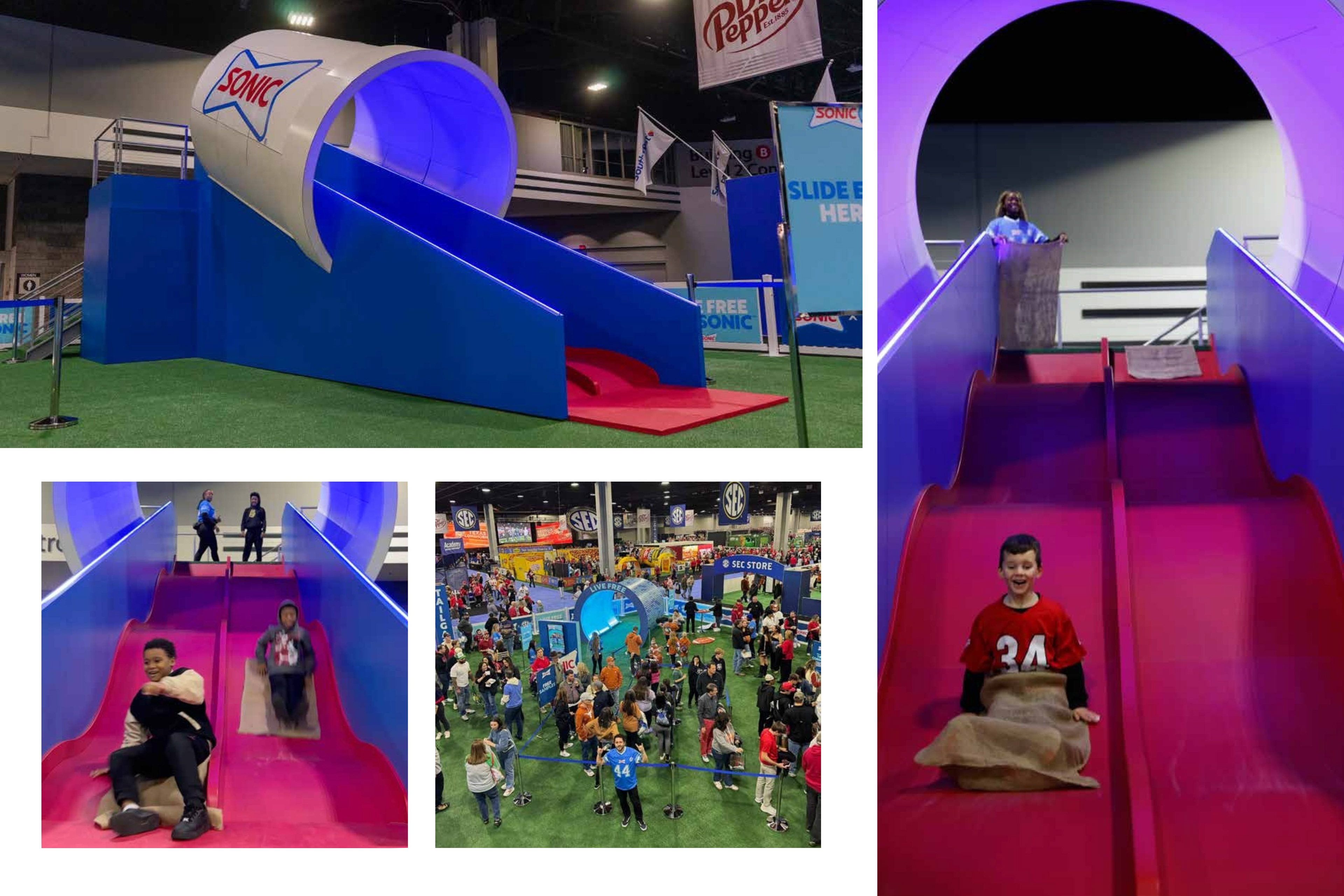 There’s a logical crossover between SONIC and college football. Both have rabid fanbases. Both have that dawg in them. Naturally, we found a way to bring them together at the SEC Championship game with this Ultimate Tailgate activation. It included a variety of SONIC themed experiences including a giant slide and an augmented reality tunnel that fans could run out of. Good times.
